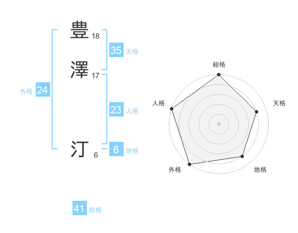 豊澤 汀さんの天格は35画の4点!