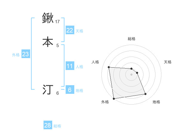 鍬本 汀さんの外格は23画の5点!