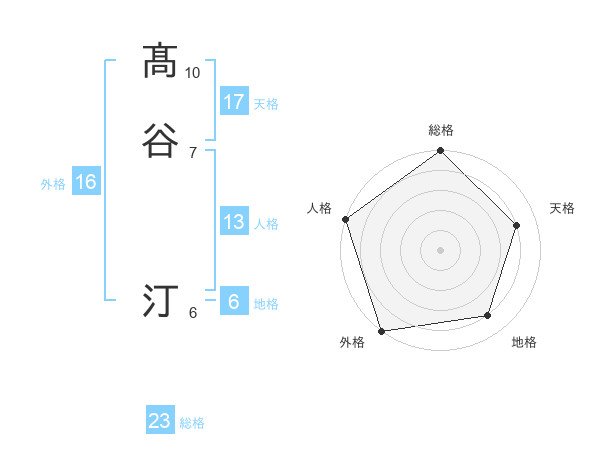 髙谷 汀さんの総格は23画の5点!