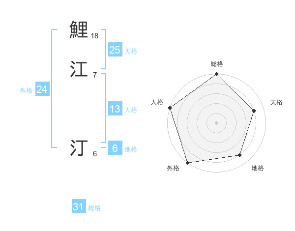 鯉江 汀さんの総格は31画の5点!