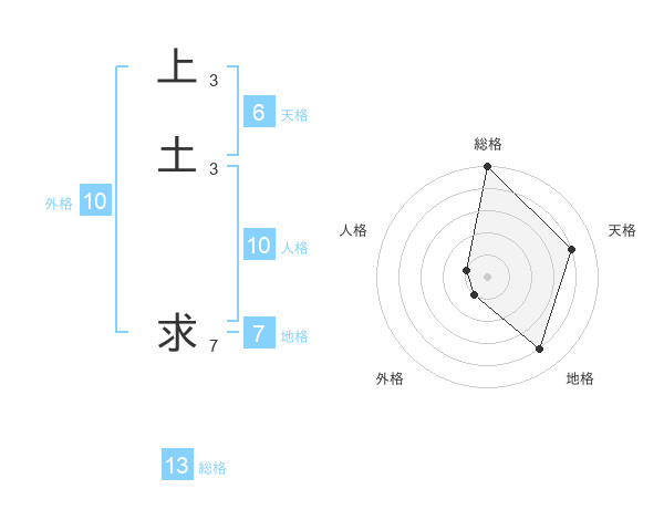 上土 求さんの総格は13画の5点!
