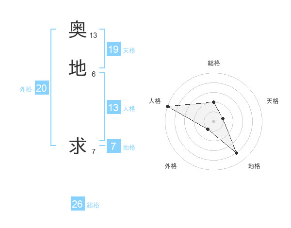 奥地 求さんの総格は26画の2点!