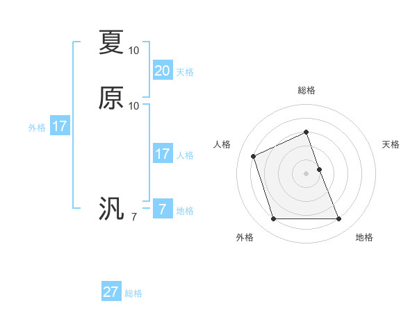 夏原 汎さんの総格は27画の3点!