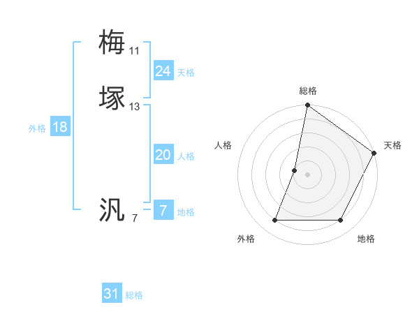 梅塚 汎さんを姓名の画数から五運を鑑定