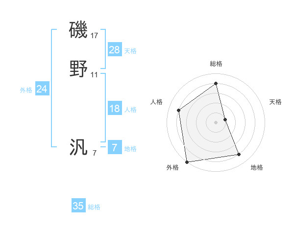 磯野 汎さんの総格は35画の4点!