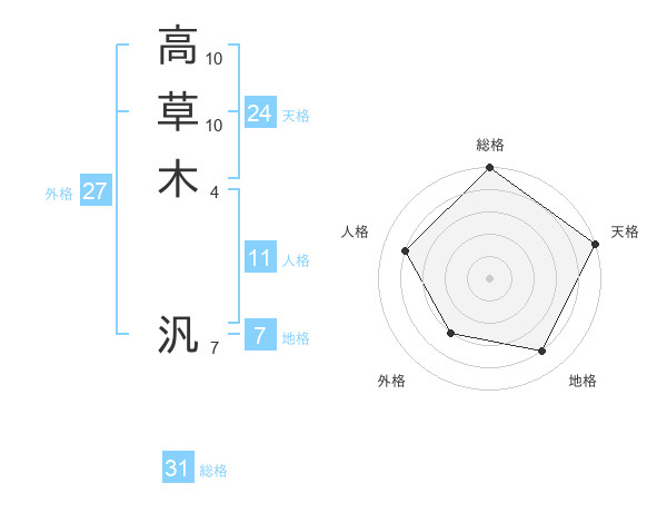 高草木 汎さんの総格は31画の5点!