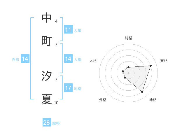 中町 汐夏さんの総格は28画の1点!