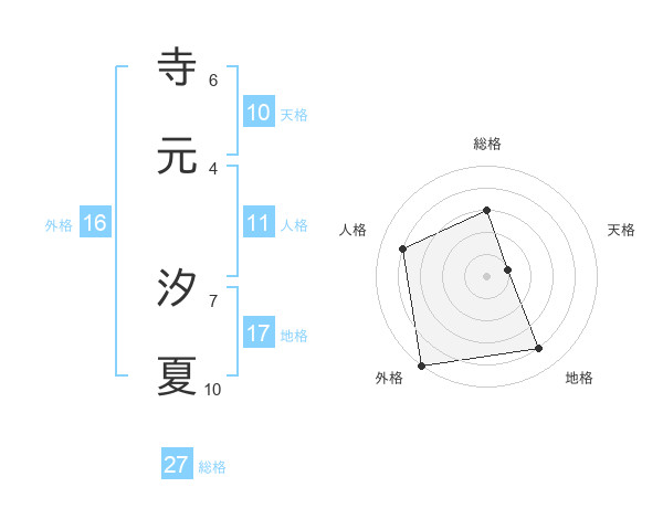 寺元 汐夏さんを姓名の画数から五運を鑑定