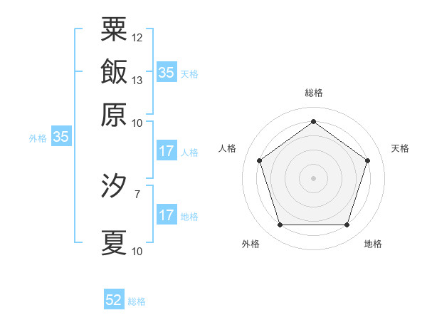 粟飯原 汐夏さんの総格は52画の4点!