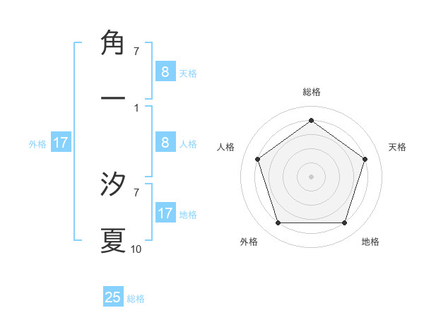 角一 汐夏さんを姓名の画数から五運を鑑定