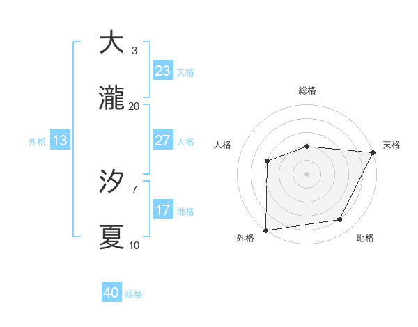 大瀧 汐夏さんの天格は23画の5点!