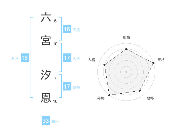 六宮 汐恩さんの総格は33画の4点!