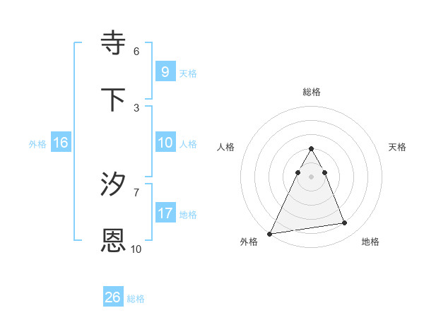 寺下 汐恩さんを姓名の画数から五運を鑑定