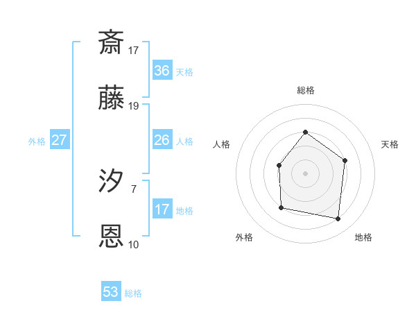 斎藤 汐恩さんを姓名の画数から五運を鑑定
