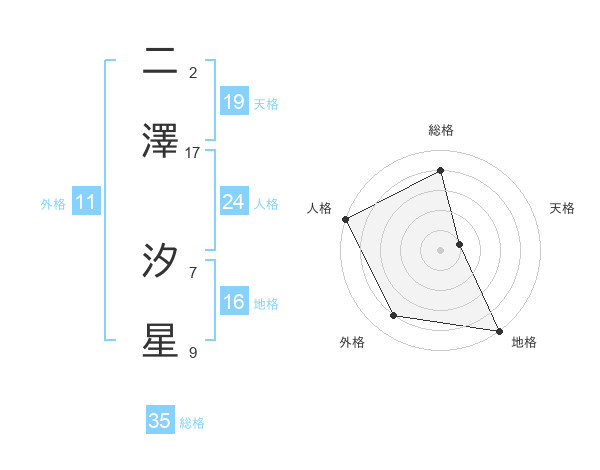 二澤 汐星さんを姓名の画数から五運を鑑定