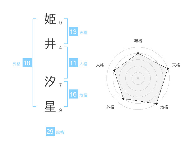 姫井 汐星さんの天格は13画の5点!
