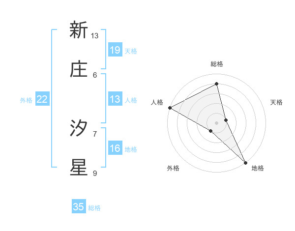新庄 汐星さんを姓名の画数から五運を鑑定