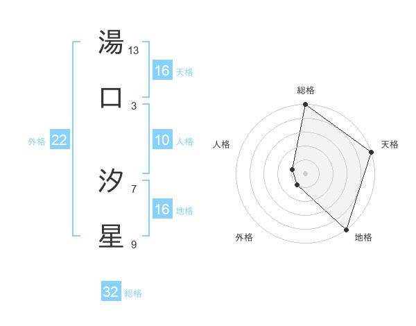 湯口 汐星さんの総格は32画の5点!