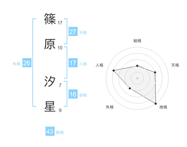 篠原 汐星さんの天格は27画の3点!