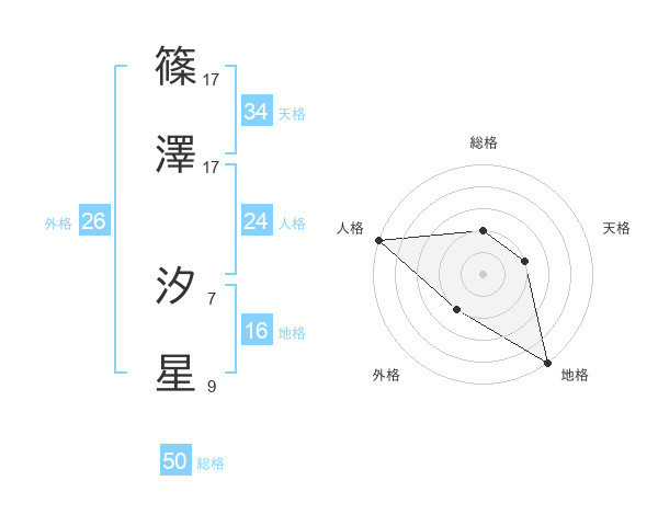 篠澤 汐星さんの天格は34画の2点!