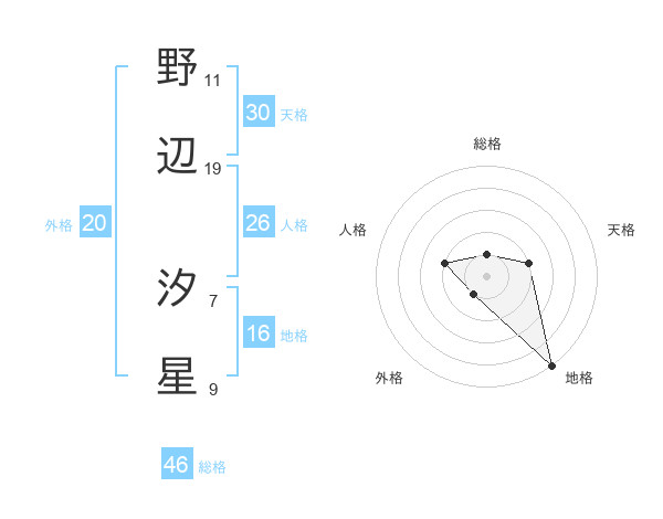 野辺 汐星さんを姓名の画数から五運を鑑定