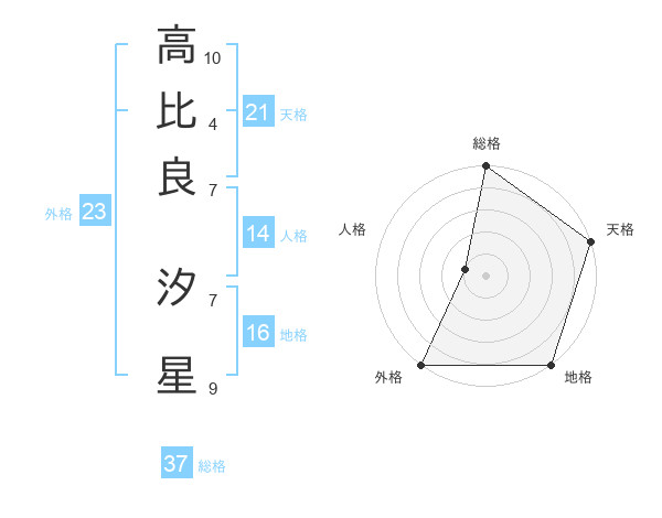 高比良 汐星さんを姓名の画数から五運を鑑定
