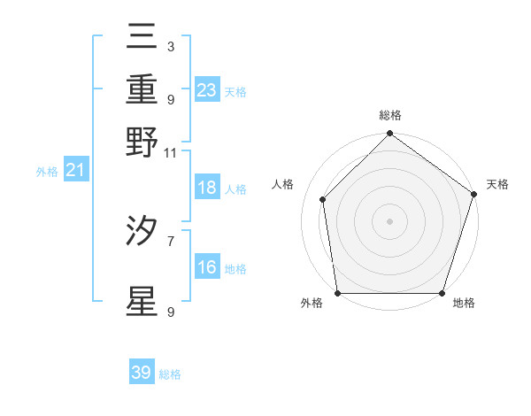 三重野 汐星さんを姓名の画数から五運を鑑定