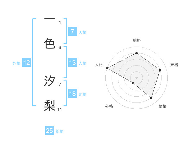一色 汐梨さんの総格は25画の4点!