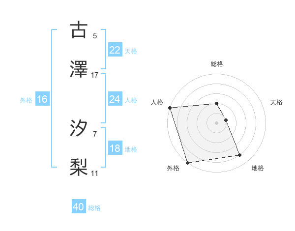 古澤 汐梨さんの天格は22画の1点!
