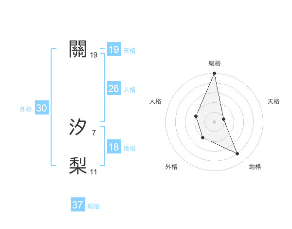 關 汐梨さんの総格は37画の5点!