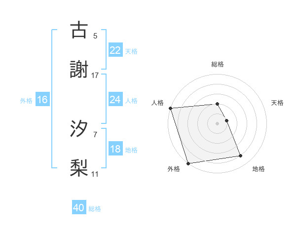 古謝 汐梨さんの外格は16画の5点!