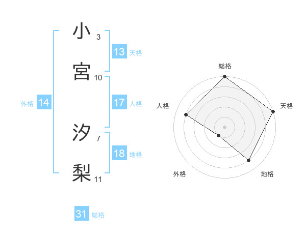 小宮 汐梨さんの総格は31画の5点!