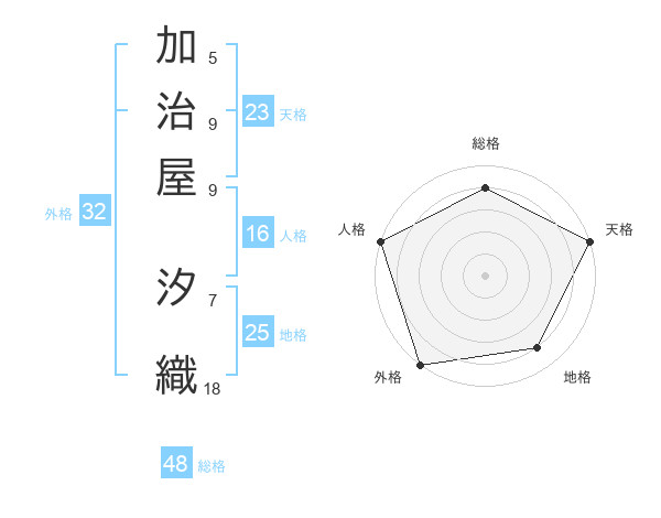 加治屋 汐織さんの外格は32画の5点!
