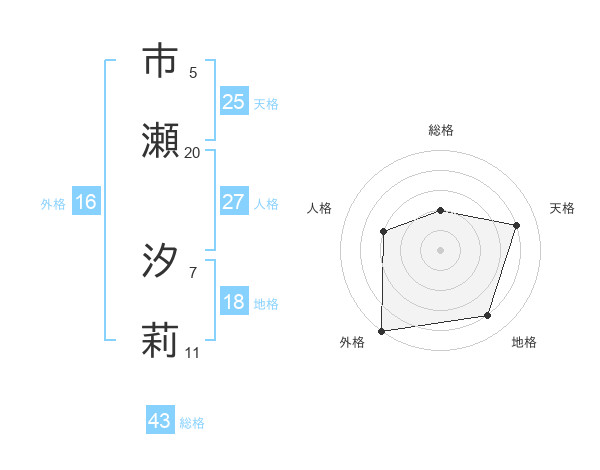 市瀬 汐莉さんを姓名の画数から五運を鑑定