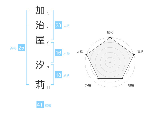 加治屋 汐莉さんを姓名の画数から五運を鑑定