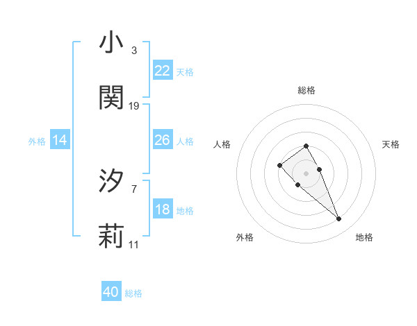小関 汐莉さんを姓名の画数から五運を鑑定