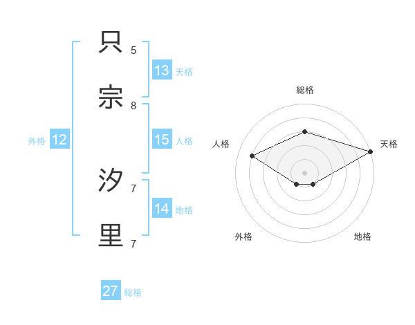 只宗 汐里さんを姓名の画数から五運を鑑定