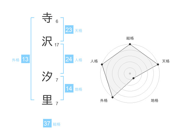 寺沢 汐里さんを姓名の画数から五運を鑑定