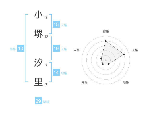 小堺 汐里さんを姓名の画数から五運を鑑定