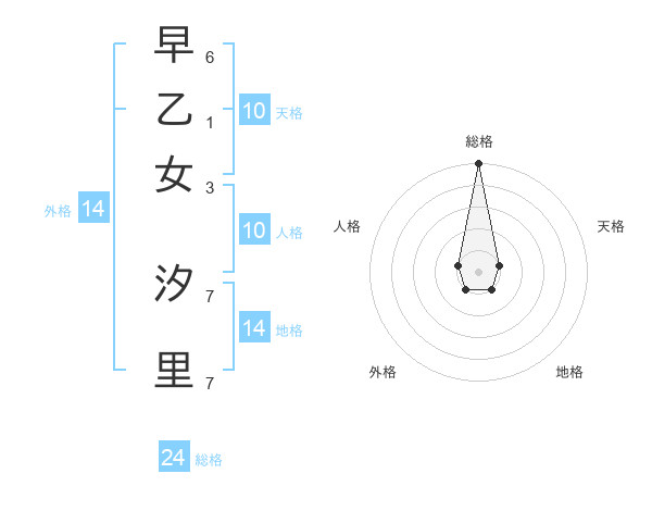 早乙女 汐里さんの総格は24画の5点