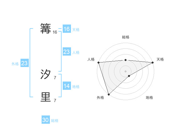 篝 汐里さんの外格は23画の5点!