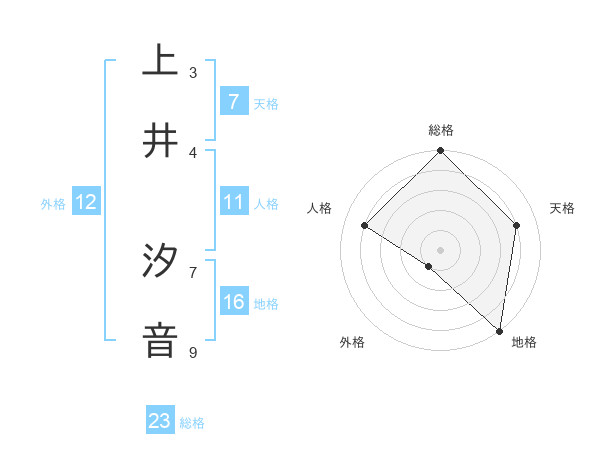 上井 汐音さんの総格は23画の5点!