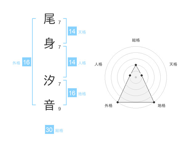 尾身 汐音さんの総格は30画の2点!