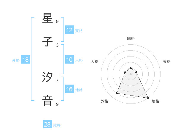 星子 汐音さんの総格は28画の1点!