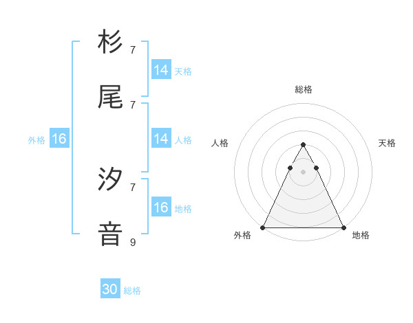 杉尾 汐音さんの外格は16画の5点!
