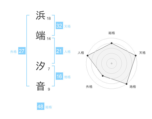 浜端 汐音さんの天格は32画の5点!