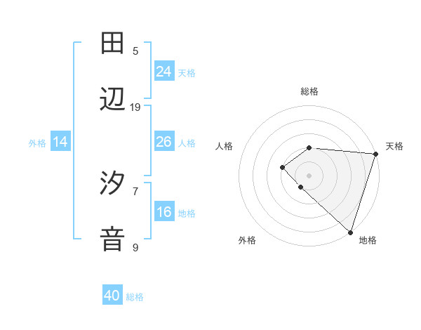 田辺 汐音さんを姓名の画数から五運を鑑定