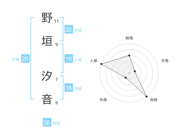 野垣 汐音さんを姓名の画数から五運を鑑定