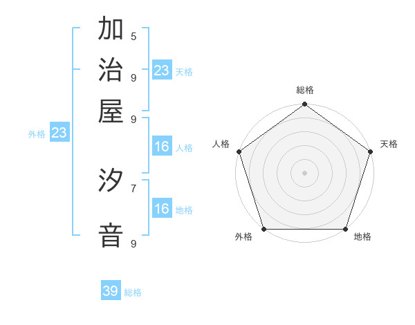 加治屋 汐音さんを姓名の画数から五運を鑑定