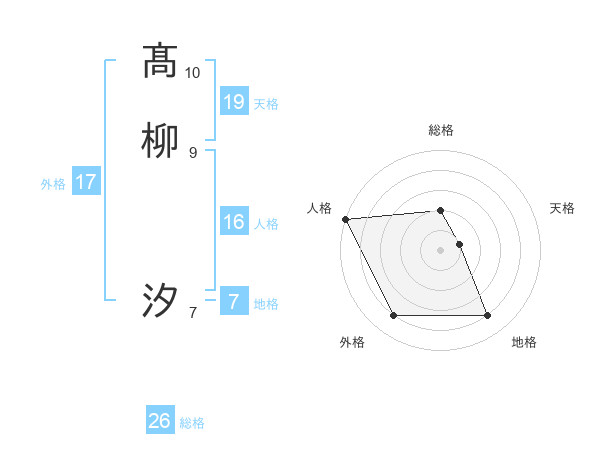髙柳 汐さんの外格は17画の4点!